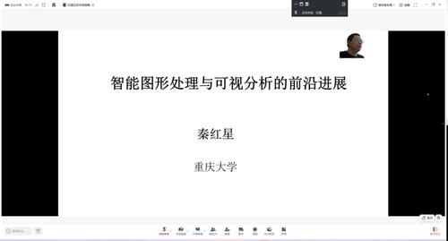 第一阶段,特邀嘉宾、来自重庆大学的秦红星教授通过线上会议形式为在场师生带来了一场题为《智能图形处理与可视分析的前沿进展》的精彩讲座。秦教授深入浅出地介绍了人工智能技术如何驱动图形图像处理领域的革新,重点讲解了复杂场景的三维重建、动态数据的实时可视化以及深度学习在医学影像分析中的突破性应用。其内容高屋建瓴,案例生动详实,不仅拓宽了师生的学术视野,更点燃了大家对智能图形未来发展的无限遐想。