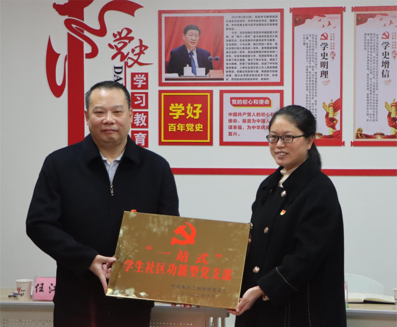 会上,任江林介绍了“一站式”学生社区功能型党支部的设立背景、意义和功能。党委组织部副部长鄢沛宣读《中共beat365英国官方网站委员会关于设置“一站式”学生社区功能型党支部成立的批复》。