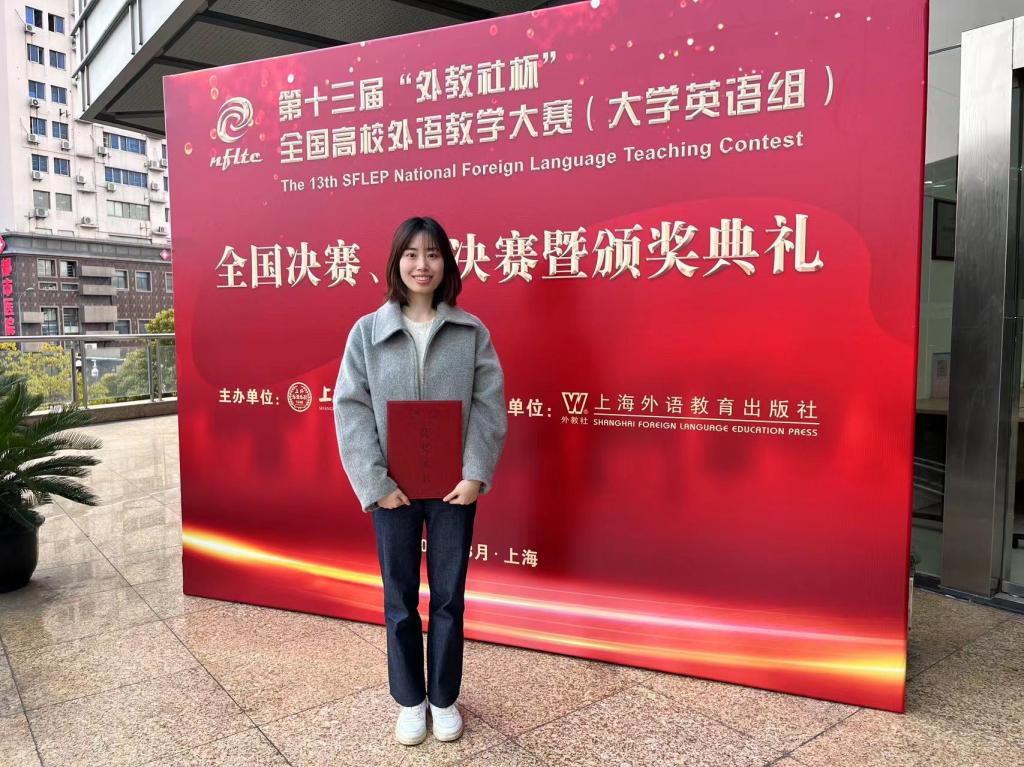 近日,第十三届“外教社杯”全国高校外语教师教学大赛(大学英语组)全国决赛、总决赛在上海举办。beat365外国语学院青年教师张力丹代表重庆市参加此次比赛,荣获大赛视听说课组三等奖。