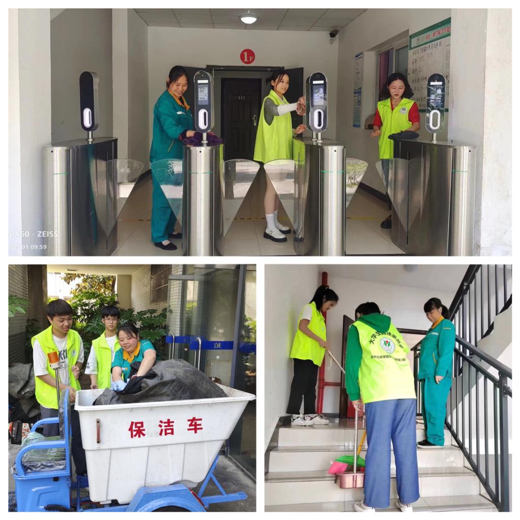 “五一”期间,学生处联合山东明德物业,在学生社区开展了以“弘扬劳动精神 争做时代新人”为主题的“我来社区当宿管”劳动体验活动。