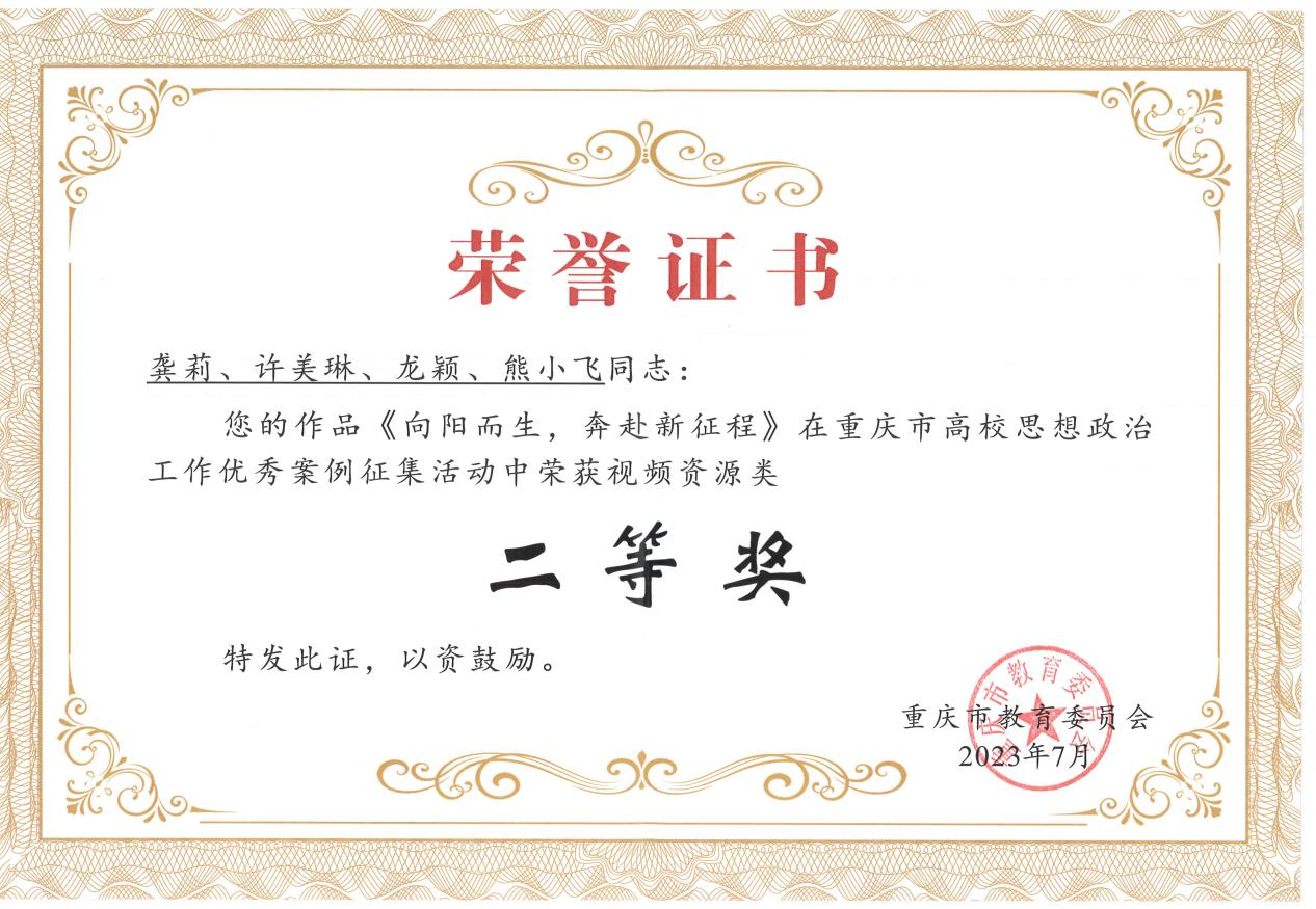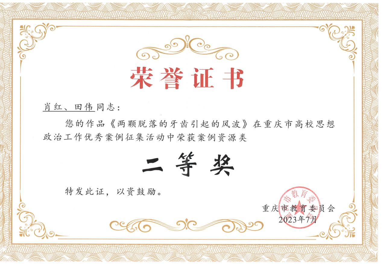 近日,重庆市教委公布高校辅导员能力提升优质资源征集活动结果。beat365环境与化学工程学院辅导员肖红撰写的《两颗脱落的牙齿引起的风波》获得案例资源类二等奖,生物与食品工程学院辅导员龚莉、许美琳、龙颖、熊小飞制作的《向阳而生,奔赴新征程》获得视频资源类二等奖。