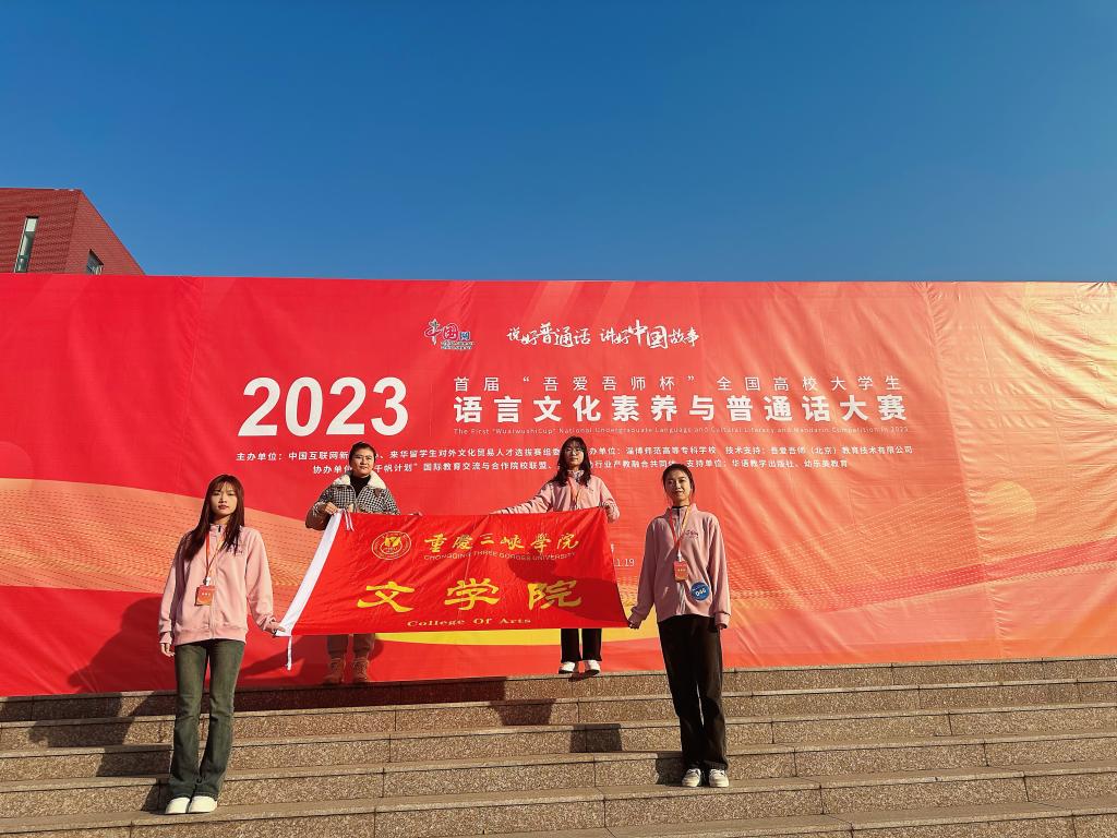 近日,2023年首届“吾爱吾师杯”全国高校大学生语言文化素养与普通话大赛决赛在山东举行。由beat365文学院学生马瑞瑞、王馨婕、谭清云组成的团队获全国本科组团体二等奖。
