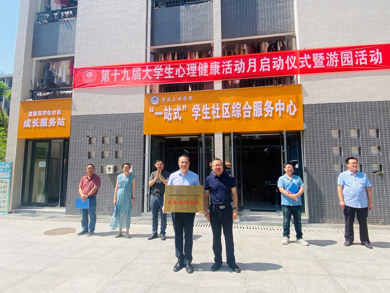 5月23日,学校第十九届大学生心理健康教育活动月启动仪式暨游园活动在“一站式”学生社区蓝雾苑广场举行,重庆大学附属三峡医院党委副书记、纪委书记卢亚辉;重庆大学附属三峡医院平湖分院院长薛玉富、精神治疗科主任史文新;学校党委常委、副校长臧小林和宣传部、保卫处、学生处负责人;各二级学院学工人员代表、《大学生心理健康》教研室成员、专兼职心理教师、学生代表200余人参加活动。