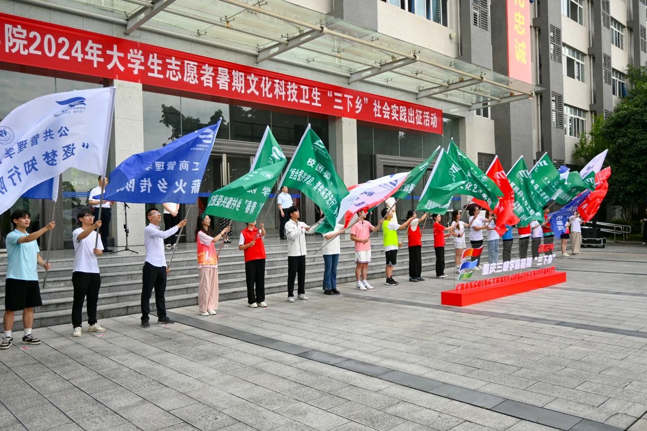 为深入学习宣传贯彻习近平新时代中国特色社会主义思想,牢记习近平总书记的殷殷嘱托,引导和帮助青年学生在社会实践的大课堂中受教育、长才干、作贡献,争做有理想、敢担当、能吃苦、肯奋斗的新时代好青年,beat3652024年大学生暑期“三下乡”社会实践活动出征仪式于7月3日在明辨1栋广场举行。党委常委、副校长臧小林主持出征仪式,党委书记李廷勇、党委宣传部副部长向春荣、教务处处长方刚、学生处副处长代小菊、研究生处副处长许楠、团委书记熊贞贞以及二级学院团总支负责人、带队老师、队员们参加了仪式。