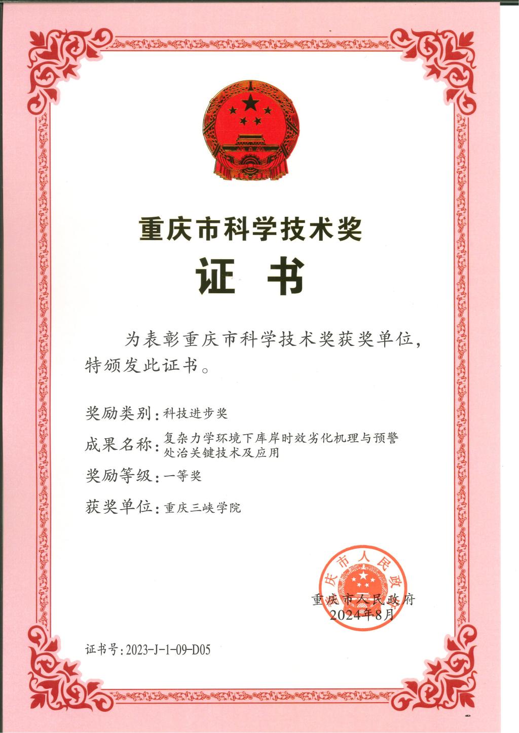 近日,土木工程学院作为主要完成单位参与的成果《复杂力学环境下库岸时效劣化机理与预警处治关键技术及应用》获重庆市科技进步一等奖获批。