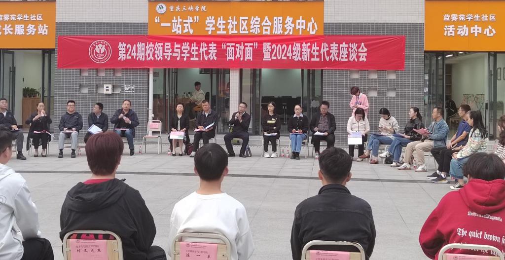 10月30日,学校在“一站式”学生社区蓝雾苑小广场召开第24期校领导与学生代表“面对面”暨2024级新生代表座谈会。