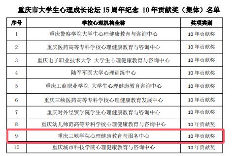 据悉,此奖项由重庆市社会心理学会设立,旨在表彰那些长期以来为大学生心理成长论坛做出卓越贡献的优秀集体和先进个人。本次共55所高校参评,15所高校获评“10年贡献奖”。