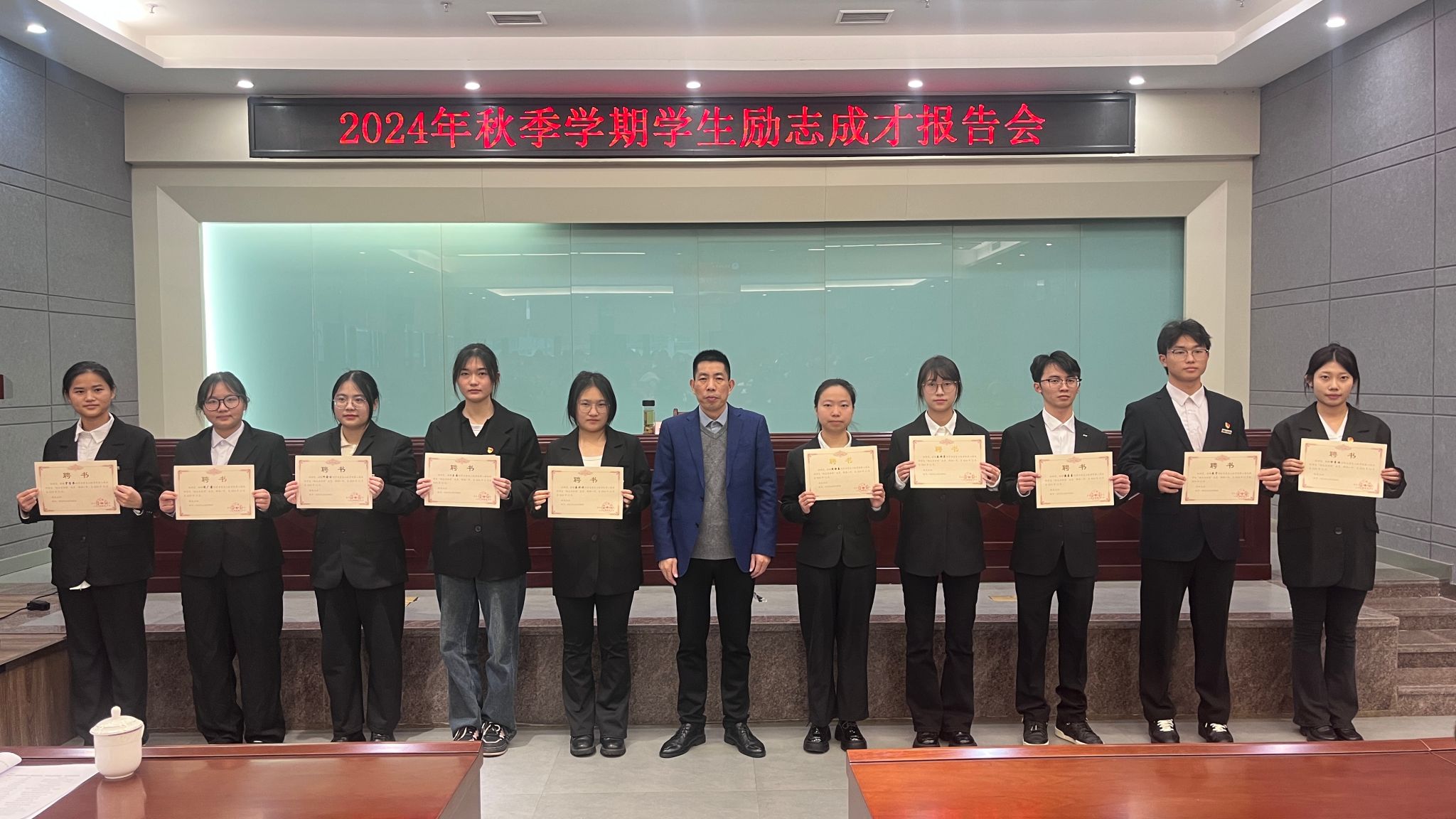12月11日,学校在科技楼二楼连廊会议室举行2024年秋季学期学生励志成才报告会,鼓励优秀学生发挥“朋辈榜样”示范引领作用,号召全校学生志存高远,砥砺奋进,筑梦前行。学校党委常委、副校长尹立孟出席会议并讲话。