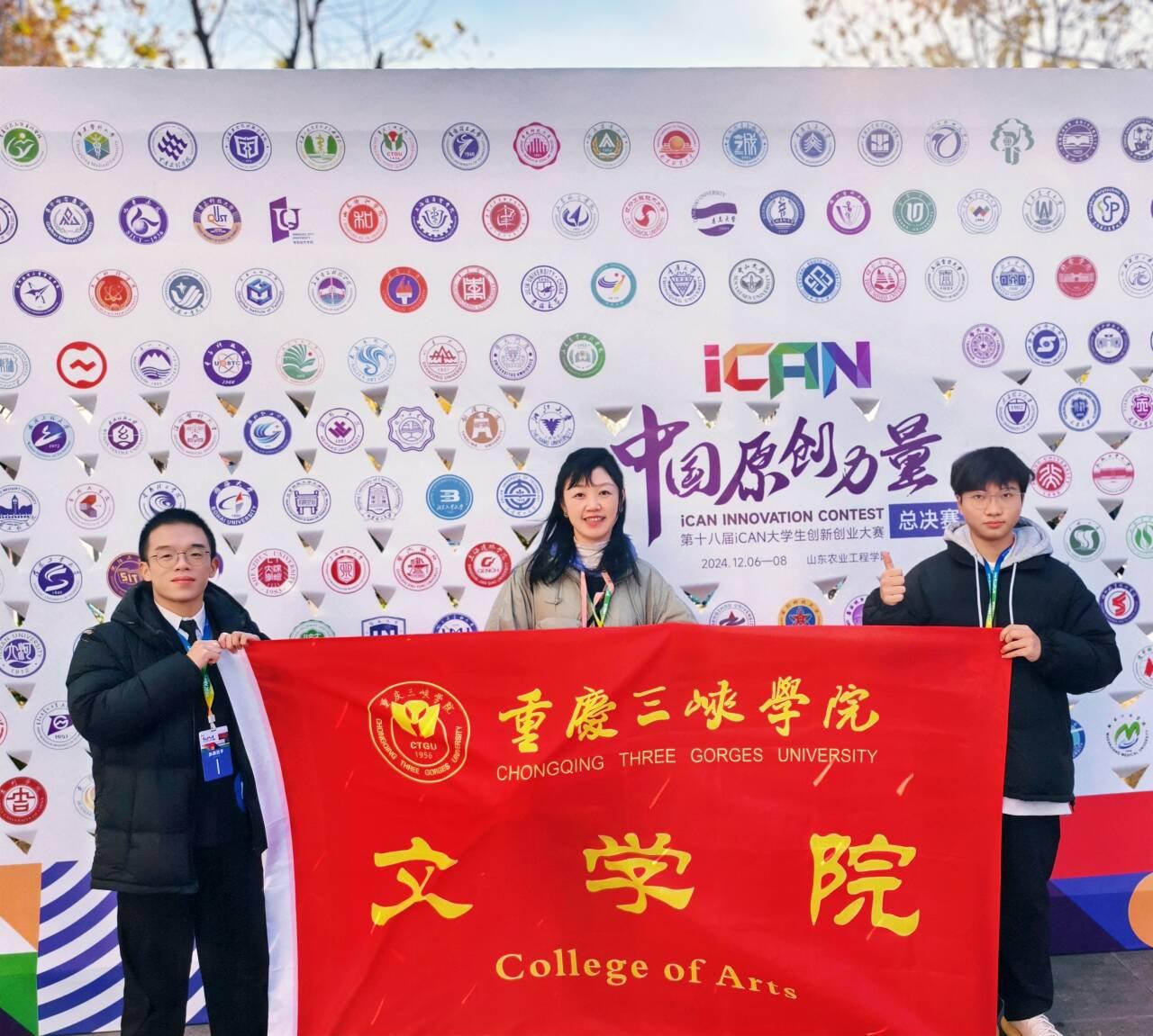 近日,2024年第十八届iCAN大学生创新创业大赛全国总决赛在山东农业工程学院(淄博校区)成功举办。文学院杨宗霖、王馨婕、张家豪、陶孝海同学负责的项目在大赛中荣获国家级三等奖、重庆市级一等奖,李俊、熊维娟荣获“优秀指导教师”称号。