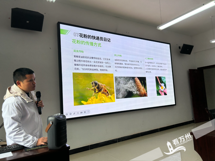 上午10时,油料室主任曾川以“探秘油菜”为主题,通过多媒体动画和实物标本,用通俗易懂的语言为孩子们揭开“油菜是谁”“油菜的生长”“油菜彩色家族”“油菜的超能力”“实验室里的双低油菜”等奥秘。小小科学家们了解到油菜不仅是中国传统“小春”作物,更是支撑粮油安全的重要战略资源。互动环节中,孩子们踊跃提问,“油菜花为什么是黄色?”“彩色油菜花是怎么变出来的?”等问题引得现场笑声连连。