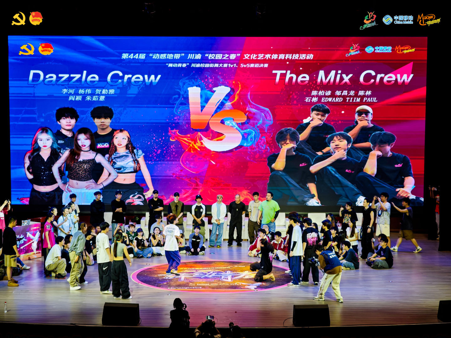 6月8日,第44届“动感地带”川渝“校园之春”文化艺术体育科技活动之“舞动青春”川渝校园街舞大赛1V1、5V5 赛道决赛在学校图书馆报告厅精彩上演。