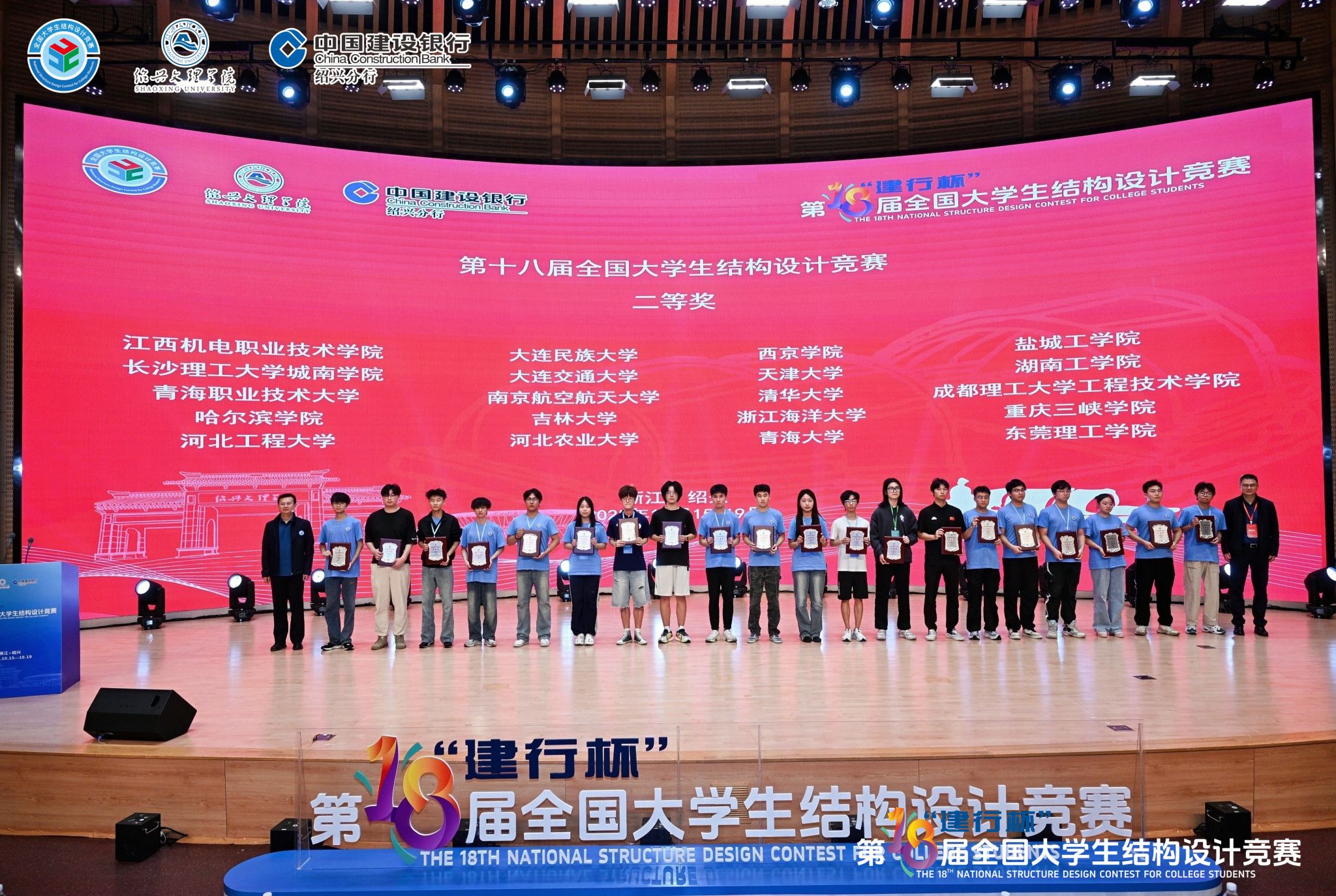 2025年10月15日至19日,“建行杯”第十八届全国大学生结构设计竞赛总决赛在绍兴文理学院举办。本届大赛有来自清华大学、浙江大学、哈尔滨工业大学、同济大学等119所高校的120支队伍共同参加,这些队伍在全国31个省(市、自治区)组织分区赛的591所高校的1792支队伍中经过择优选拔产生。beat365土木工程学院曹晖斌、廖宇涵、徐莹同学组成的代表队晋级总决赛,获全国二等奖。
