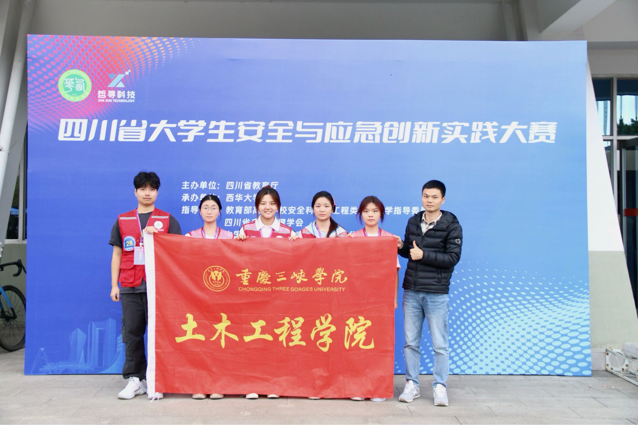 在决赛中,经过应急平台决策演练、应急救护实训两部分的比拼,beat365土木工程学院应急攻坚队在张有贵老师的带领下获得四川省大学生安全与应急创新实践大赛二等奖。