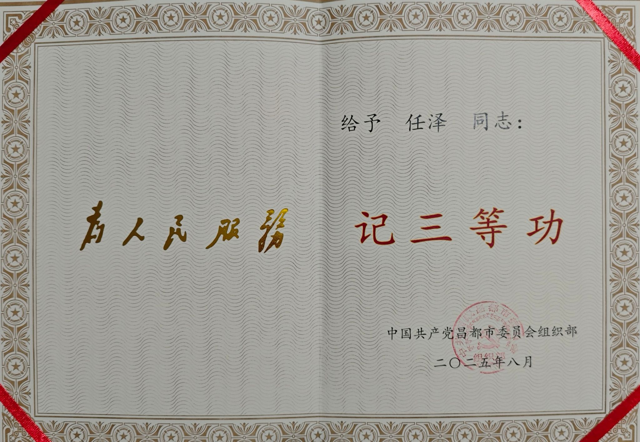任泽2019年毕业于土木工程专业,现任西藏自治区贡觉县拉妥乡政法委员。工作以来连续三年获评“优秀公务员”,2025年荣获“公务员三等功”。